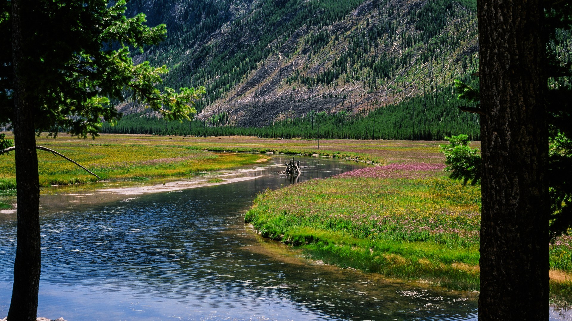 The river passes through stunning landscapes, including sections within Yellowstone, Hebgen Lake (formed by a dam), Quake Lake (created by the 1959 Hebgen Lake earthquake landslide), and the scenic Madison Valley flanked by mountain ranges like the Madison, Gravelly, and Tobacco Root.